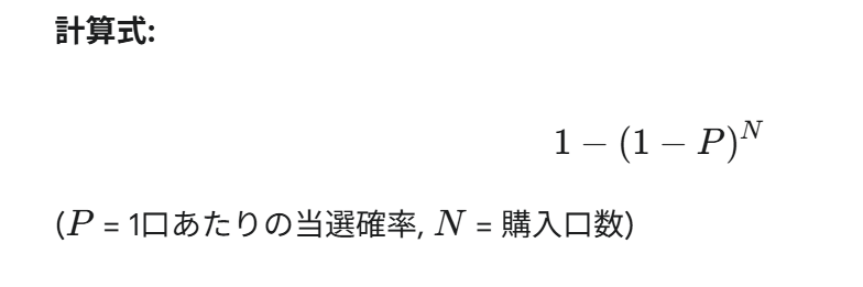 単純に「1口あたりの確率 × 口数」では、正しい確率は計算できません。