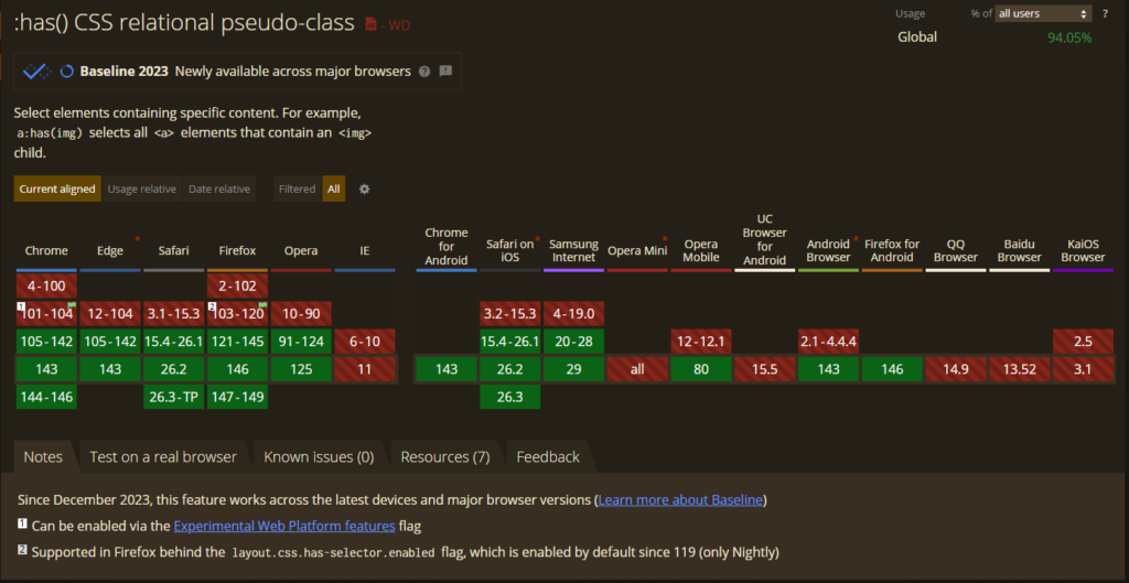 Can I use で確認したところ、主要なブラウザでは has 疑似クラス関数サポートされているため、大半は問題ないはず。